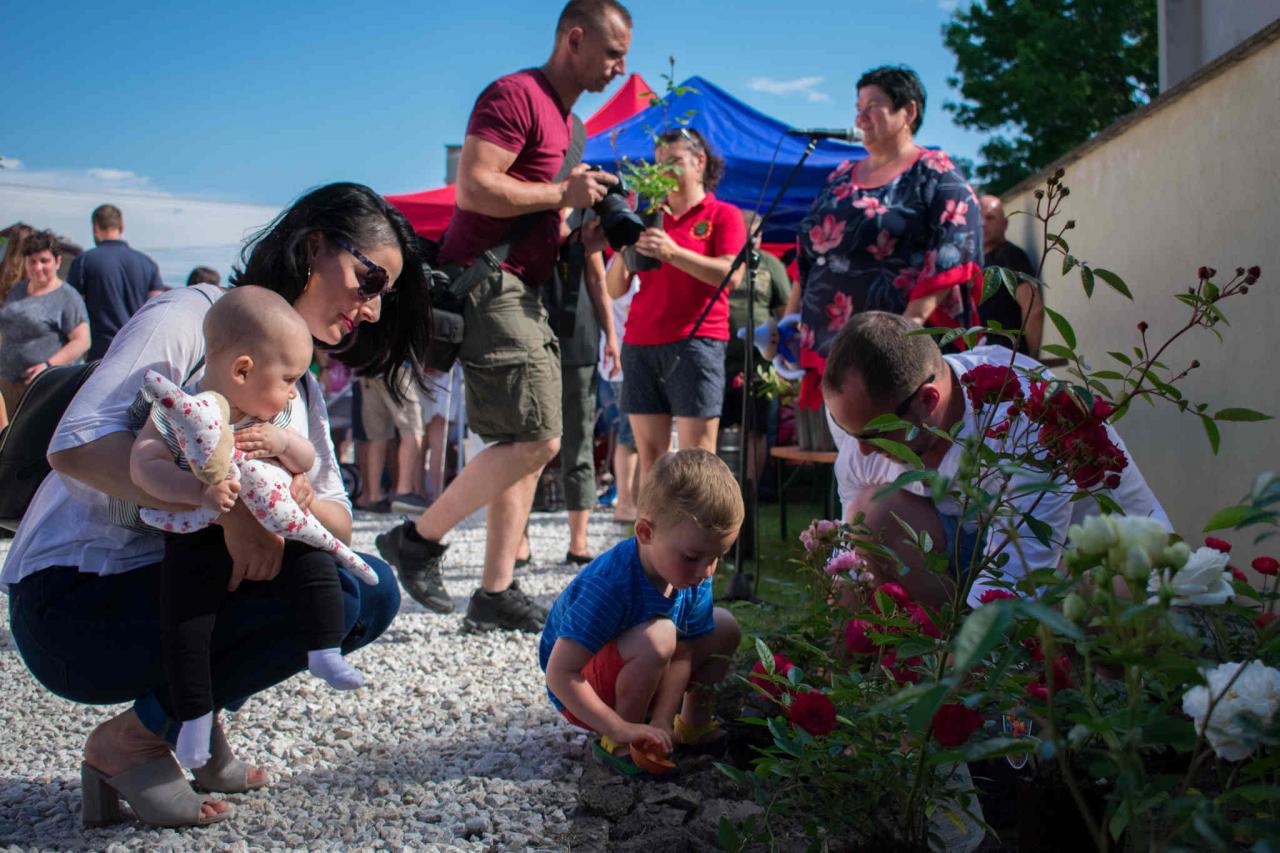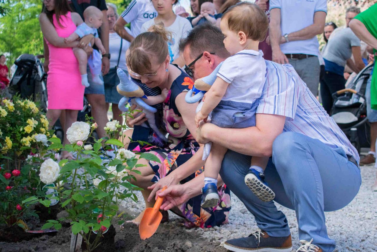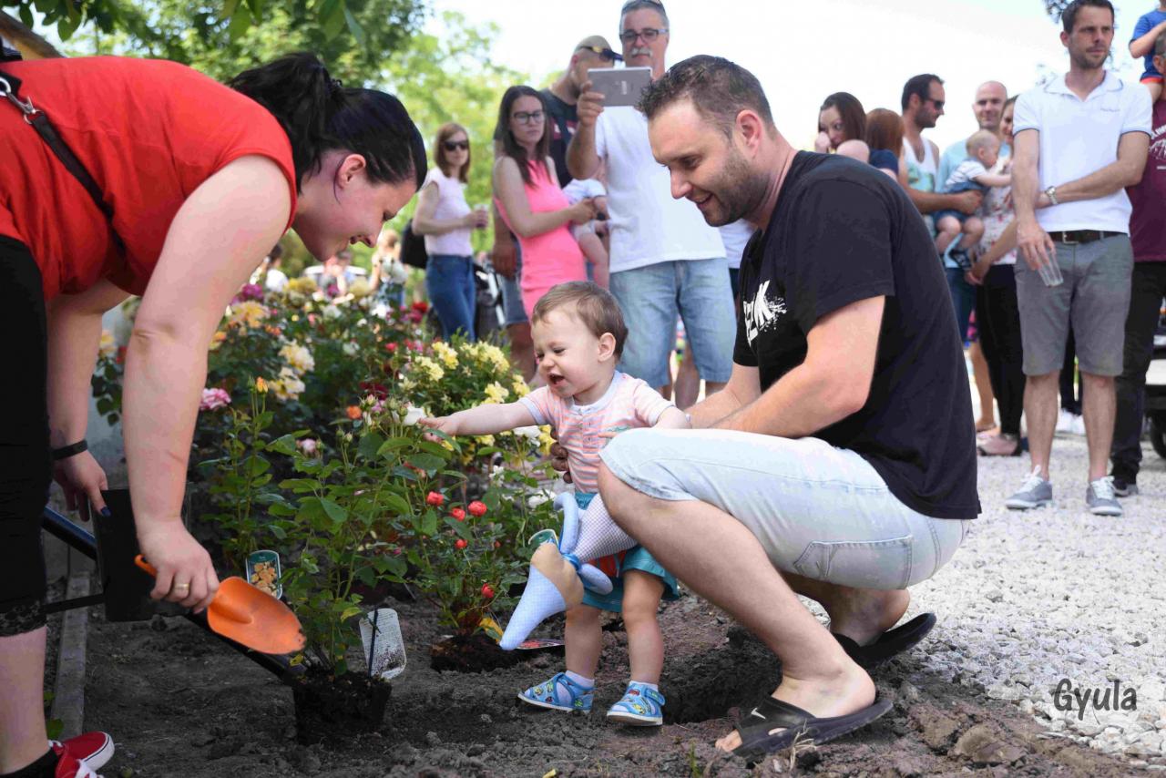 Tradičné sadenie ruží do ružovej záhrady detí narodených v roku 2018 / A 2018 évben született gyermekek rózsáinak a kiültetése.