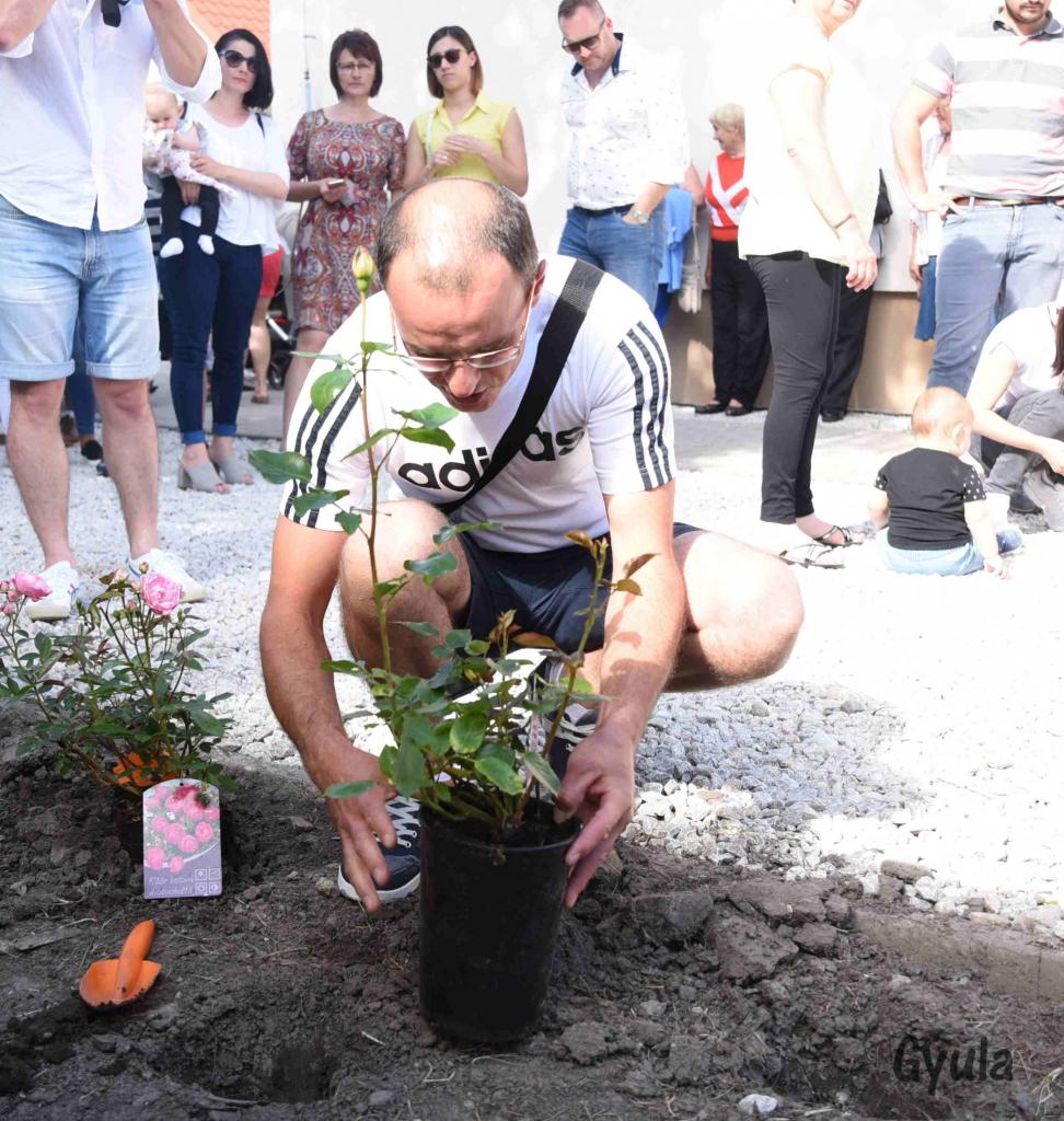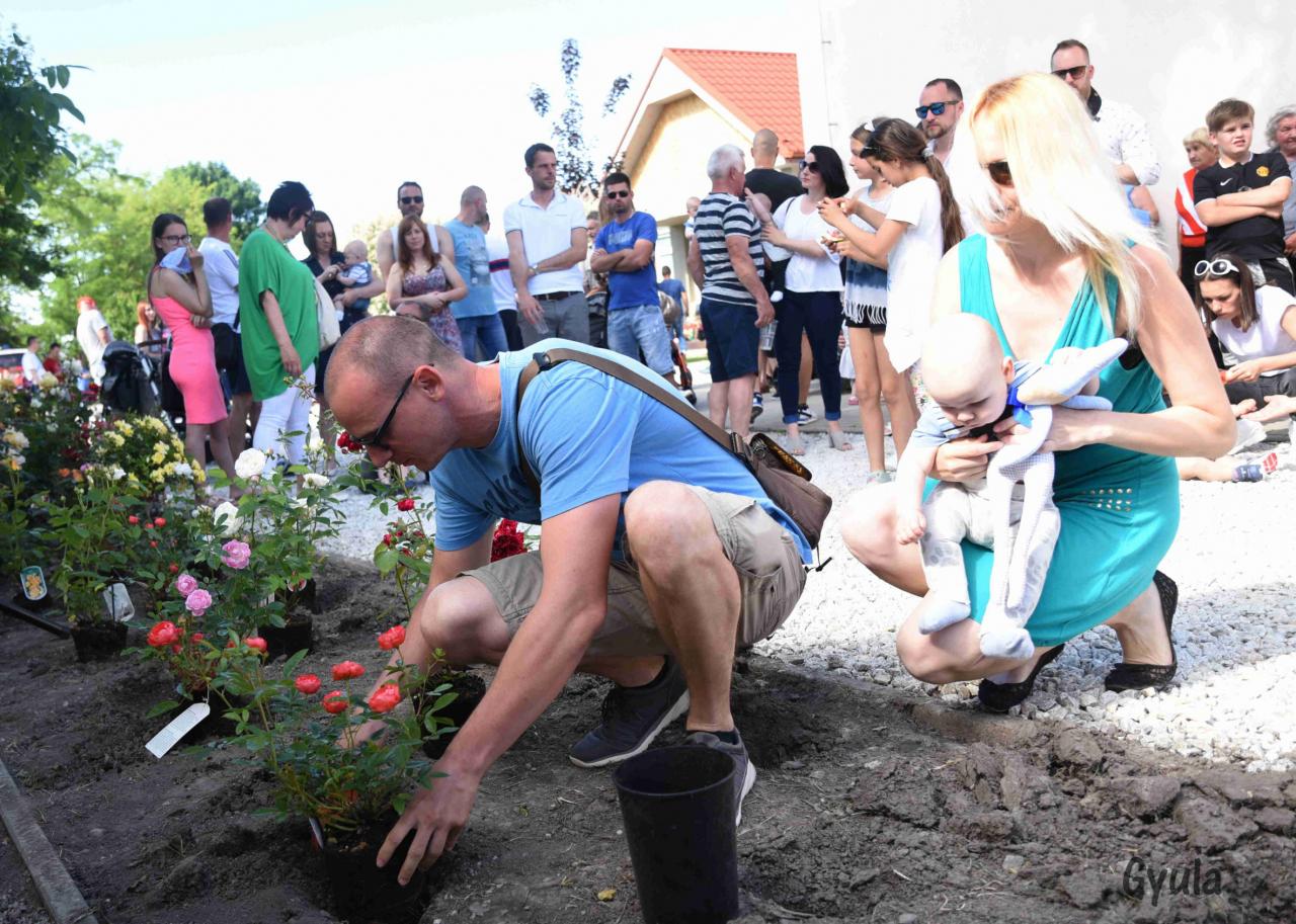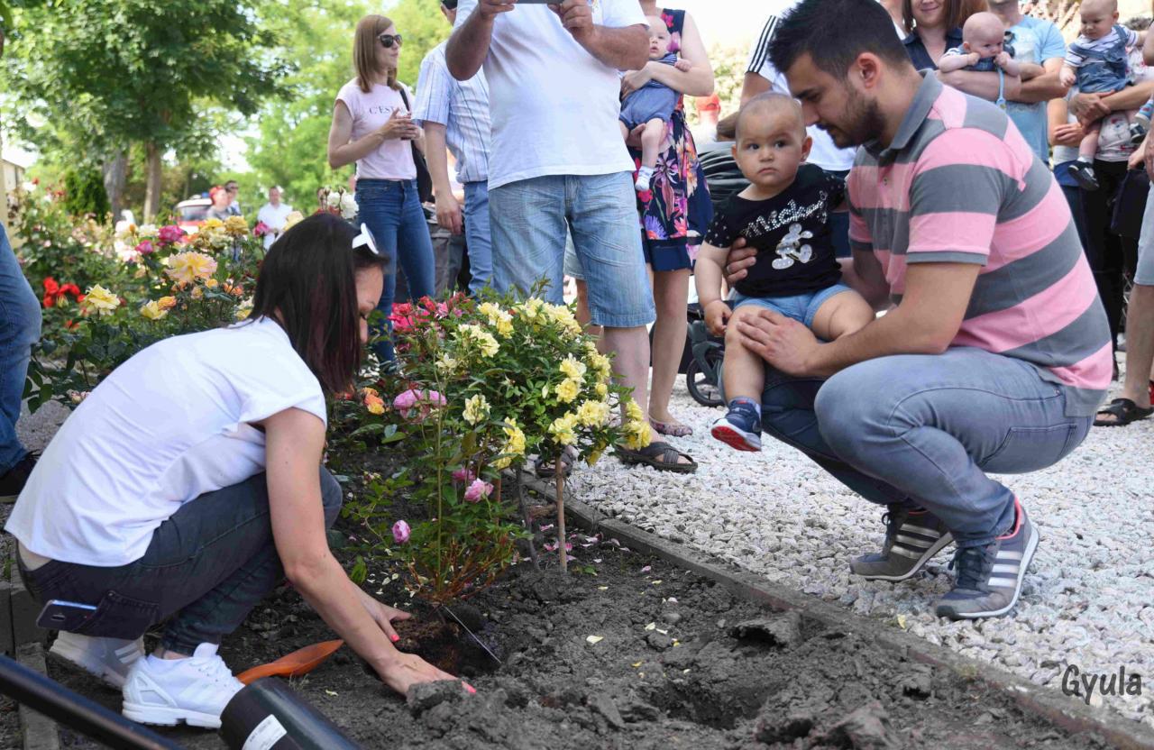 Tradičné sadenie ruží do ružovej záhrady detí narodených v roku 2018 / A 2018 évben született gyermekek rózsáinak a kiültetése.